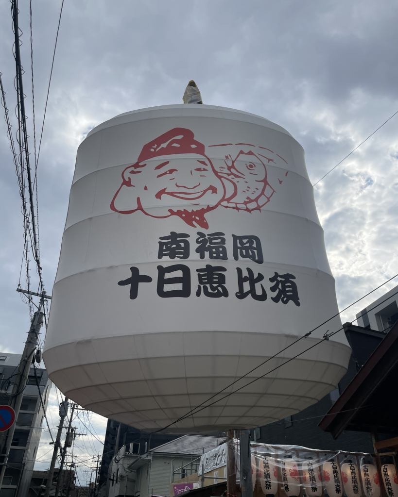 南福岡十日恵比須大祭にいってきたんだもん! JR南福岡駅近くにある南福岡十日恵比須神社で、毎年12月に、商売繁盛を祈願する『南福岡十日恵比須大祭』が行われているんだもん。 あいにくの冷たい曇り空だったけれども、露天も出ていて、お友達が書いた恵比須さまのぬりえも展示されていたんだもん。 お祭りのシンボルの大提灯の大きさにびっくりしたんだもん! せんねもんも神社にお参りをして、福笹と鯛みくじをゲットしたんだもん♪
